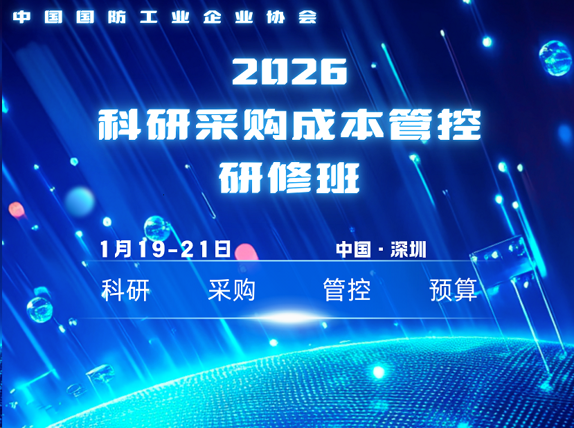 为进一步掌握新时期装备科研生产价格成本管控工作及实务操作,精准理解科研生产领域政策文件,提升科研生产风险管控能力及提高业务方案编报工作水平,更好地满足会员单位以及为其配套的科研生产企业的专业培训需求,中国国防工业企业协会将于2026年1月19日-21日在成都深圳市举办“科研概算、采购价格及目标成本管控高级研修班”