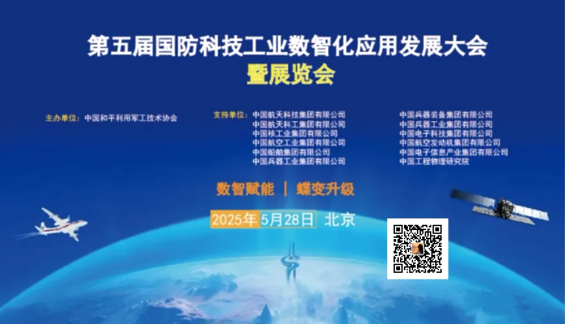 2025年5月28~30日在北京召开“第五届国防科技工业数智化应用发展大会暨展览会”支持单位,十大军工集团 大会主题“数智赋能 蝶变升级” 大会已经成功举办四届,参会人数累计达2500余人,展览展示企业400余家。其中来自航空、航天、船舶、兵器、电子、核工业、中物院等军工单位代表1000余人。大会紧扣数智化时代脉搏,汇聚军地行业专家和业界精英同台论“数”,赋能国防科技工业高质量发展。诚邀您的参与 报名联系:王老师 132 6039 9180 微信