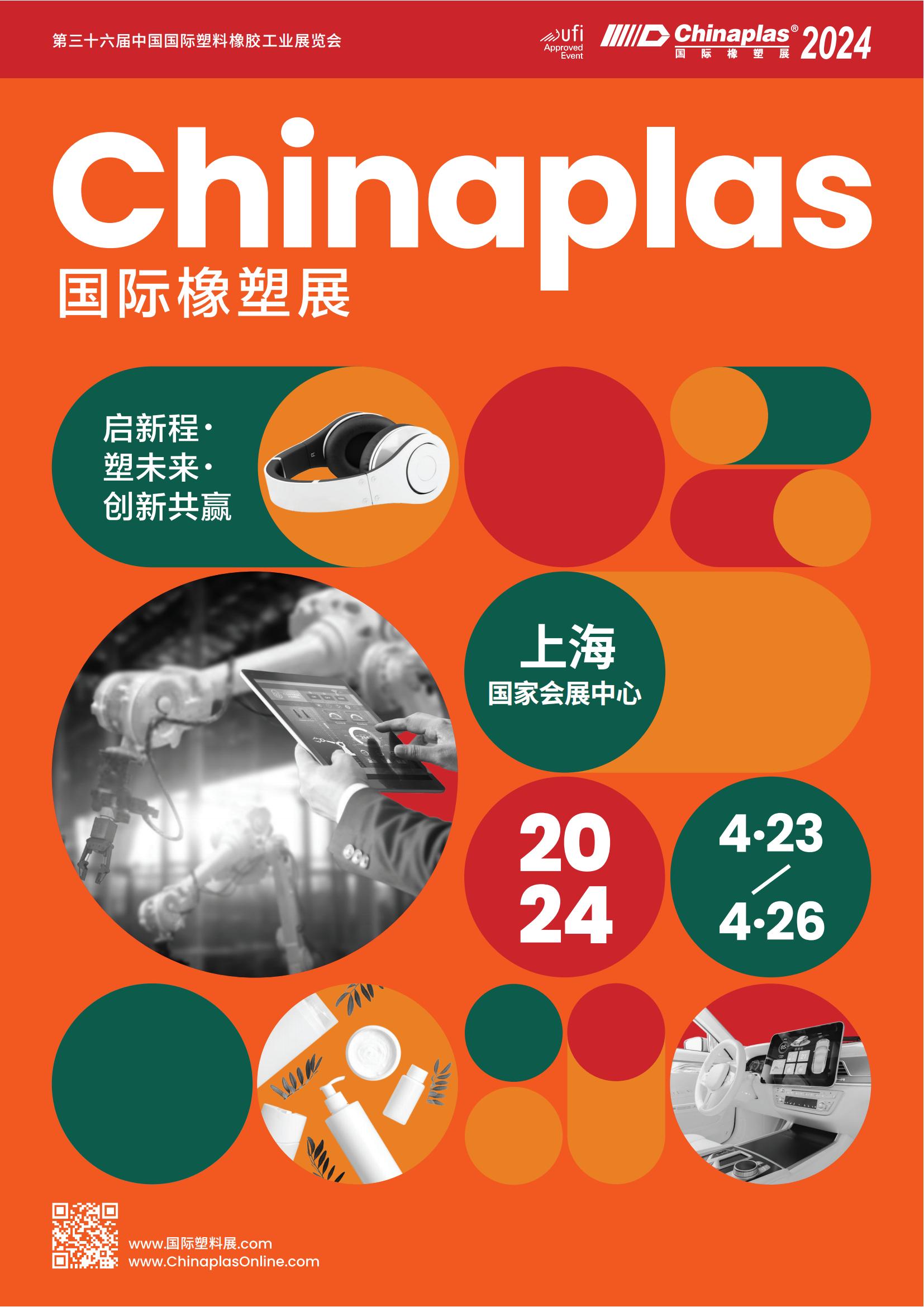 “CHINAPLAS 2024 国际橡塑展”作为橡塑业界发布前瞻市场趋势、突破性技术及创新方案的首选平台,将于2024年4月23 - 26日强势回归上海国家会展中心(虹桥)。展会为上游供应商及寻求创新橡塑科技方案的买家搭建了优质的桥梁,助力产业加速转型,为行业的高质量发展注入新优势和新动力。