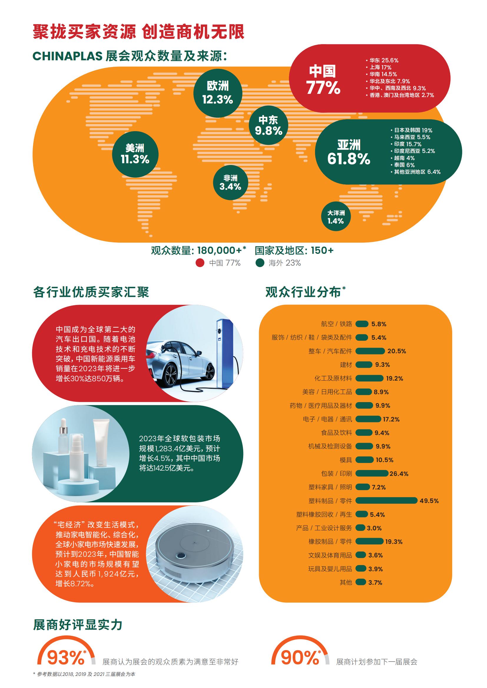 这些骄人发展,预示了中国橡塑市场前景光明,催生了国内高性能塑料材料和高新技术的庞大需求。这种转变的局面凸显了循环经济、数字化和“中国创造”的重要性。“CHINAPLAS 2024 国际橡塑展”作为亚洲领先的橡塑展,将与全球超过4,000家优质展商携手在上海国家会展中心(虹桥)的15个展厅,以逾38万平方米的展示面积,为买家带来橡塑领域顶尖智慧成果。透过展示一系列先进、高性价比的创新材料、机械科技,促进各应用行业的增长和发展。