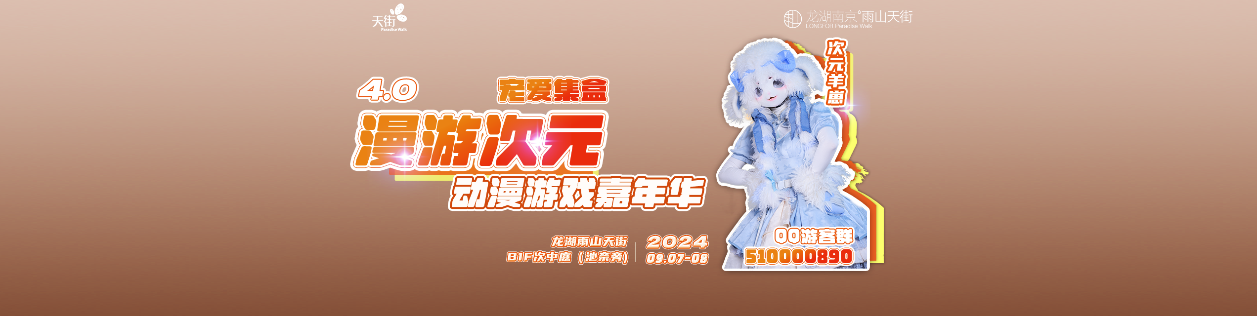 南京漫展·宠爱集盒 漫游次元4.0动漫游戏嘉年华,一场跨越次元的梦幻盛宴,即将于2024年9月7日至8日璀璨启幕,每日10:00至18:00,于南京心脏地带——龙湖雨山天街B1F激情上演,地铁10号线雨山路站无缝对接,引领您直达这场幻想与现实交织的奇妙之旅。